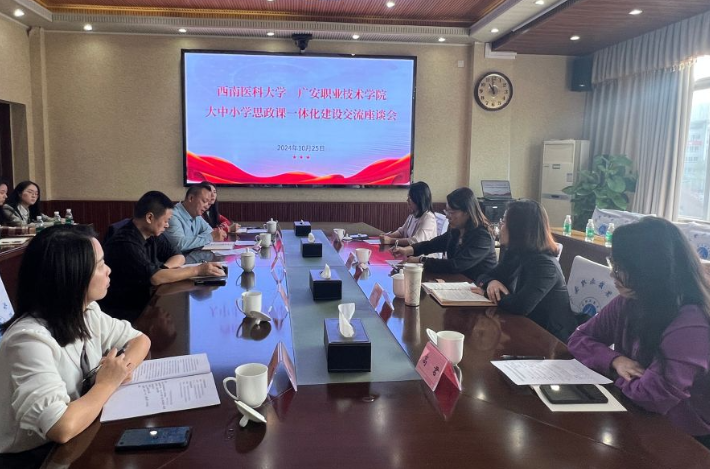 首先,石乾福对黄院长一行到校指导交流表示感谢,并就广安市大中小学思政课一体化建设、教学改革、科学研究、社会服务以及学院做法等方面情况作了交流。西南医科大学开云kaiyun体育副院长赵微就西南医科大学大中小学思政课一体化建设、科研申报等4个方面进行了分享和交流。黄晓利院长从利用研究中心、示范课程建设、教师激励等方面进行了补充。她强调,大中小学思政课一体化建设要立足本地实际,要研究堵点、短板和不足,要推进横向融通、纵向贯通、区域连通,要实现跨区域合作,促进思政课教学资源优化配置。要用好场馆等红色文化资源,深化校际间合作,共同探索大中小学思政课一体化建设经验和方法,真正贯彻好习近平总书记关于思政课是落实立德树人根本任务关键课程的重要指示精神。西南医科大学马院高君博士就如何开展教学比赛、课程建设等方面作了分享。