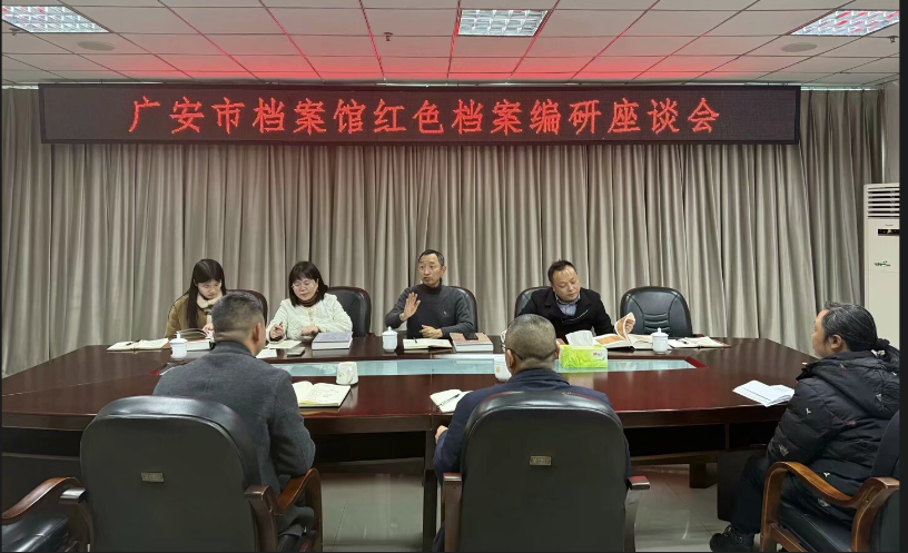 会上,曹馨主任就《广安市广安区档案馆藏抗战档案选编》的主要内容作了分析概括,提出了专项课题研究、学术讲座、宣传折页制作等多项合作建议,希望以档案资源为纽带,深入挖掘红色文化内涵,推动红色精神在新时代的传承与弘扬。石乾福结合教学实际,从将红色档案资源融入教学内容,共建实践教学基地,开展“红色档案”广职行活动,服务大中小学思政课一体化建设等方面提出了建议,并就校地党建共建、特色课程开发等合作达成初步共识。唐清华副主任从具体活动策划角度出发,提出了以档案为基础,开展当代艺术与历史档案碰撞、红色研学系列主题活动的设想。市档案馆馆长孙勇、副馆长席云超对学校的提议表示高度认可,并分享了馆藏红色档案资源的特色与价值。双方一致同意在课题研究、短视频制作、学术讲座、思政课堂及公众宣传等方面展开深度合作,共同打造具有影响力的红色文化品牌活动。