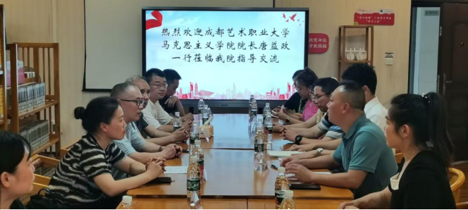 7月14日下午,成都艺术职业大学开云kaiyun体育院长唐益政一行18人到开云官网指导交流。开云kaiyun体育直属党支部书记、院长石乾福,校党政办副主任周泽南,林光余、杨进军、闫泓竹等马院部分思政课教老师陪同校园参观并在思源楼601进行了座谈交流,会议由院长石乾福主持。