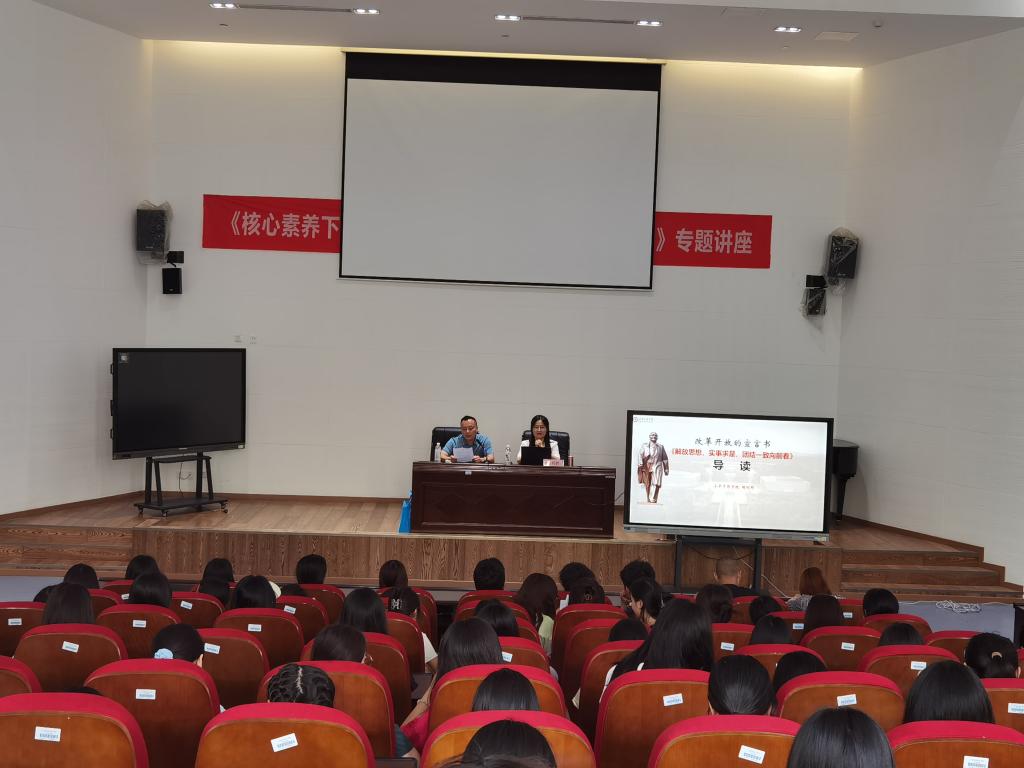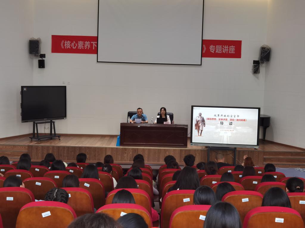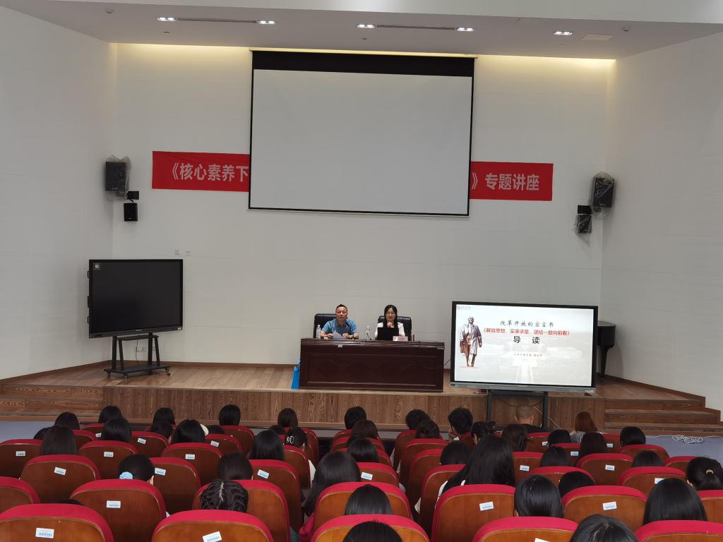为学习贯彻党的二十大精神,深刻认知全面深化改革是新时代的鲜明特征,凝聚师生共识,推动学校高质量发展,6月6日下午3:00,小平干部学院院务委员、教研部部长胡利群在岳秀楼翔凤厅开展了以“解放思想,实事求是,团结一致向前看”为主题的学术讲座。讲座由开云kaiyun体育院长石乾福主持,开云kaiyun体育、学前教育学院、师范学院无课教师和学生共计170余人聆听了本次讲座。