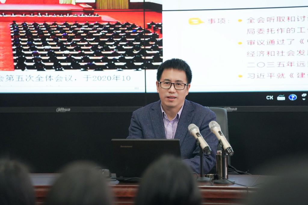 12月23日,学校党委副书记、校长王义全在致用楼紫金厅以“学习党的十九届五中全会精神”为题,为120余名师生上了一堂生动而精彩的形势与政策课。