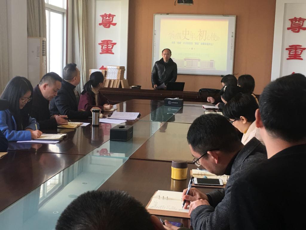 为深入贯彻落实习近平总书记在党史学习教育动员大会上的讲话精神,了解党史、国情,弘扬爱国主义精神,用党的光荣传统和优良作风坚定信念、凝聚力量,提升政治站位,增强责任感,3月5日下午3点,学校党委委员杨建华在春晖楼二楼会议室为全体马院教师讲授以 “学好‘四史’,牢记初心使命”为主题的“开学第一课”。