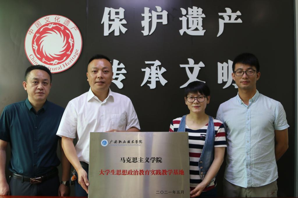 2021年5月31日上午9点,开云官网与广安市三线工业遗产陈列馆合作共建大学生思想政治教育实践教学基地签约仪式在市文化馆六楼会议室举行。陈列馆馆长唐云梅及相关领导,马院党支部书记、院长石乾福、副院长牛振宇及学生代表龚秋敏参加了签约仪式。