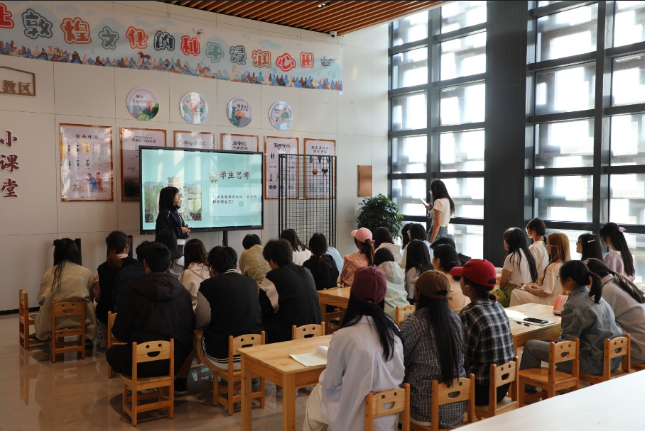 本次活动开展12场,覆盖各专业千余名学生到馆实践教学。通过学生近距离欣赏张大千真迹、敦煌壁画、彩塑模型等展品,聆听敦煌文化精神的发展脉络、艺术成就及历史故事,在现代科技赋能下为同学们搭建起与敦煌进行一场跨越千年、纵横万里的时空对话。随后,教师开展现场教学,让学生从敦煌历史变迁中感受中华优秀传统文化的深厚底蕴,从多元文化融合中体会开放包容的时代价值,从“一带一路”倡议中感受合作共赢的发展智慧等思政理论,让思政教育从书本走向现实,极大地激发了学生对思政课的兴趣和对传统文化的热爱。
